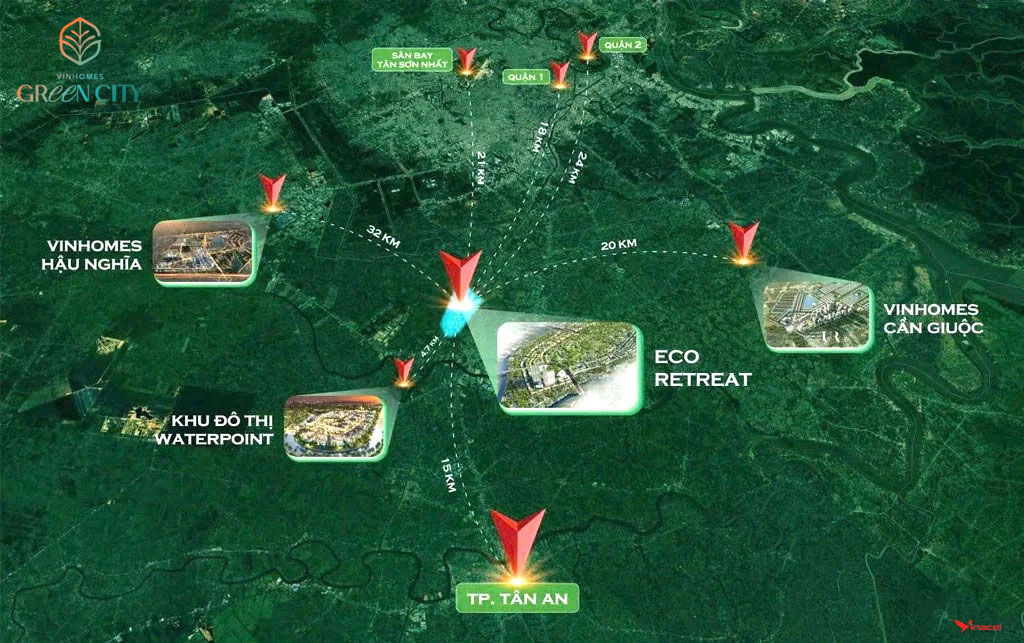 Vinhomes Green City là khu đô thị xanh đẳng cấp do VinGroup phát triển tại Long An, kết nối thuận tiện với TP.HCM qua các tuyến đường huyết mạch (Vành đai 4, Metro số 2, Võ Văn Kiệt)