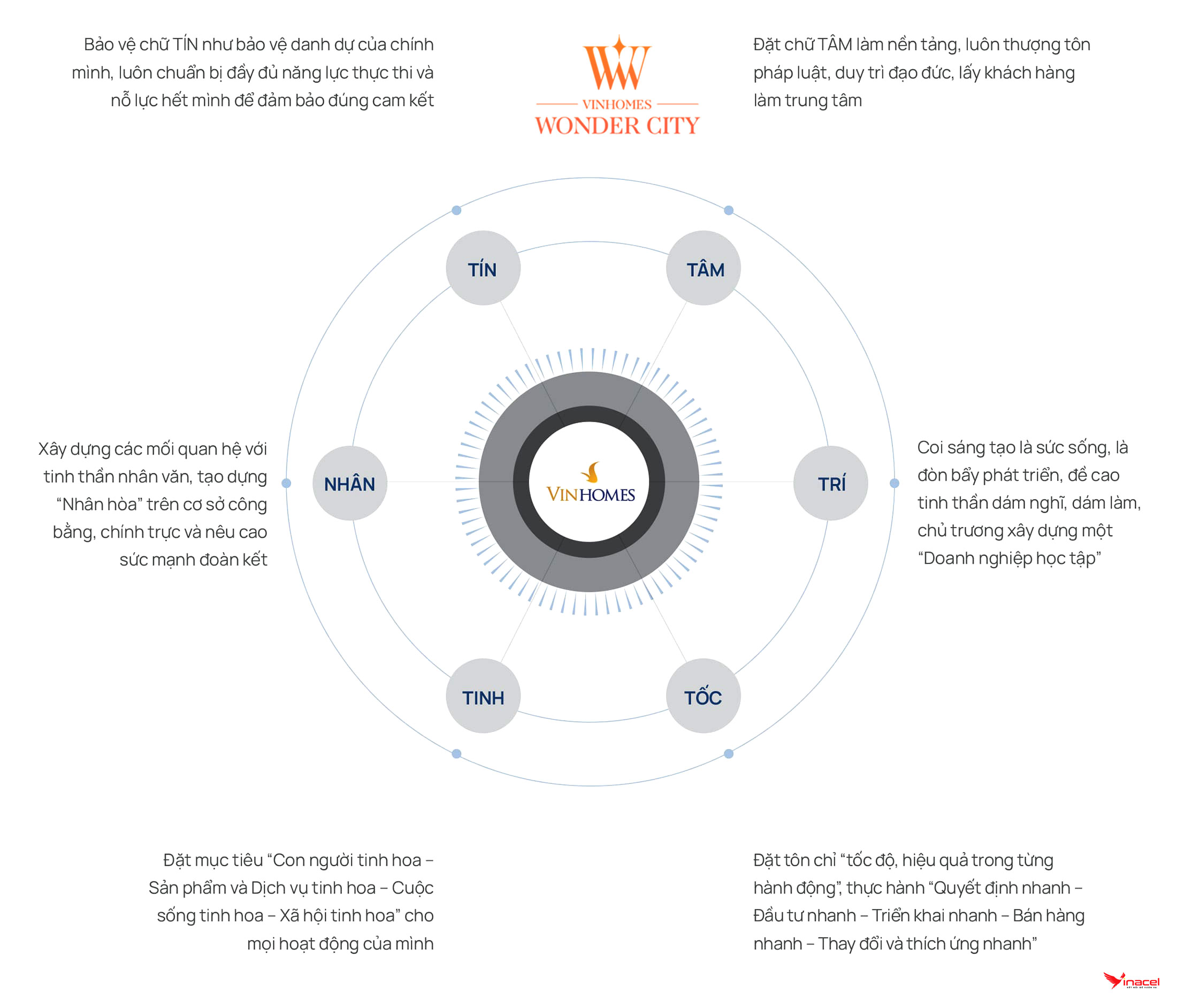 Minh bạch và hiệu quả là những mục tiêu quan trọng hàng đầu mà mô hình quản trị doanh nghiệp của Vinhomes hướng tới. Hội đồng Quản trị Vinhomes ý thức sâu sắc rằng chỉ có xây dựng và vận hành được hệ thống quản trị doanh nghiệp đảm bảo các tiêu chí đó mới mang lại cho cổ đông của Vinhomes những giá trị và sự phát triển bền vững. Là một đơn vị thành viên quan trọng của Tập đoàn Vingroup, Vinhomes được kế thừa các giá trị cốt lõi và nguyên tắc quản trị doanh nghiệp của công ty mẹ. Vinhomes được tổ chức theo cấu trúc phù hợp với các thông lệ quốc tế tốt nhất. Trong đó, vai trò sở hữu, quản trị và điều hành được tách bạch. Các hoạt động của Công ty được tổ chức theo các khối chức năng, phụ trách các lĩnh vực trong chuỗi giá trị.