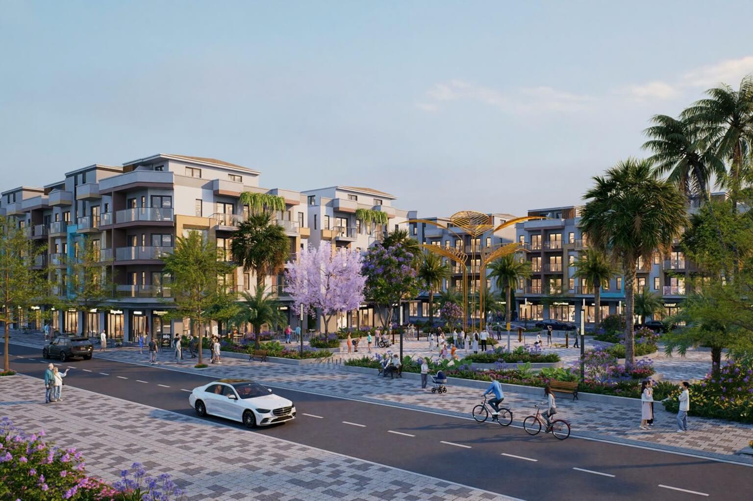 • Đặc điểm: Các căn shophouse được thiết kế tối ưu cho mục đích kinh doanh, với mặt tiền rộng và vị trí nằm trên các trục đường chính của dự án. Đây là lựa chọn lý tưởng cho các nhà đầu tư muốn khai thác thương mại, mở cửa hàng, quán café hoặc văn phòng.