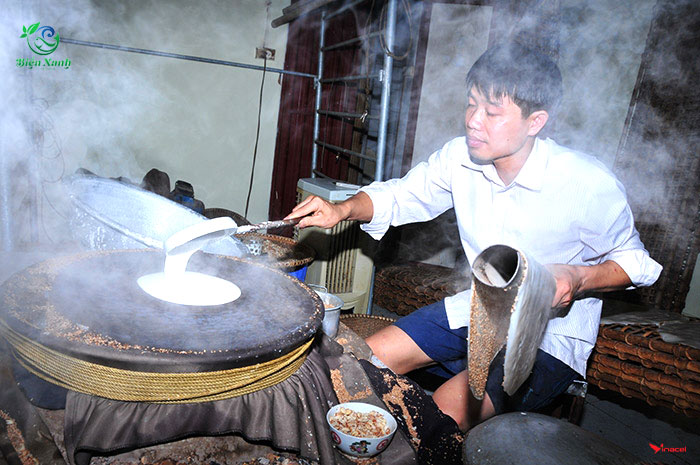 Bánh sẽ được tráng trên nồi hơi và làm hoàn toàn thủ công, khi tráng người làm cần nhẹ tay và trải trãi thật phẳng, đều thì những chiếc bánh ra lò mới đẹp và không bị rách.