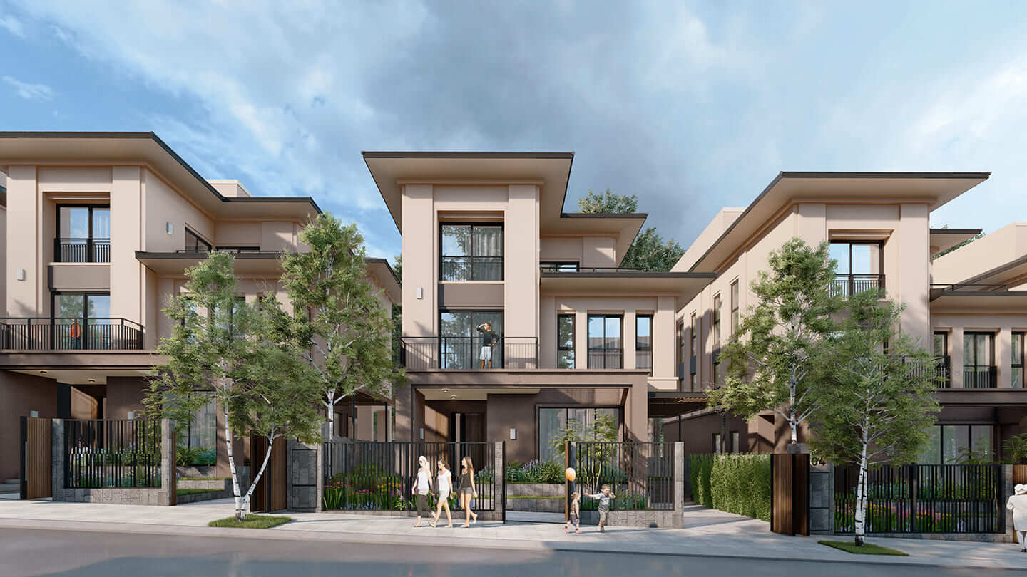 Biệt Thự Song Lập: 18 căn, diện tích 232-290 m², thiết kế tương tự – hài hòa hiện đại và cổ điển, phù hợp doanh nhân thành đạt, sinh lời từ vị thế TOD.