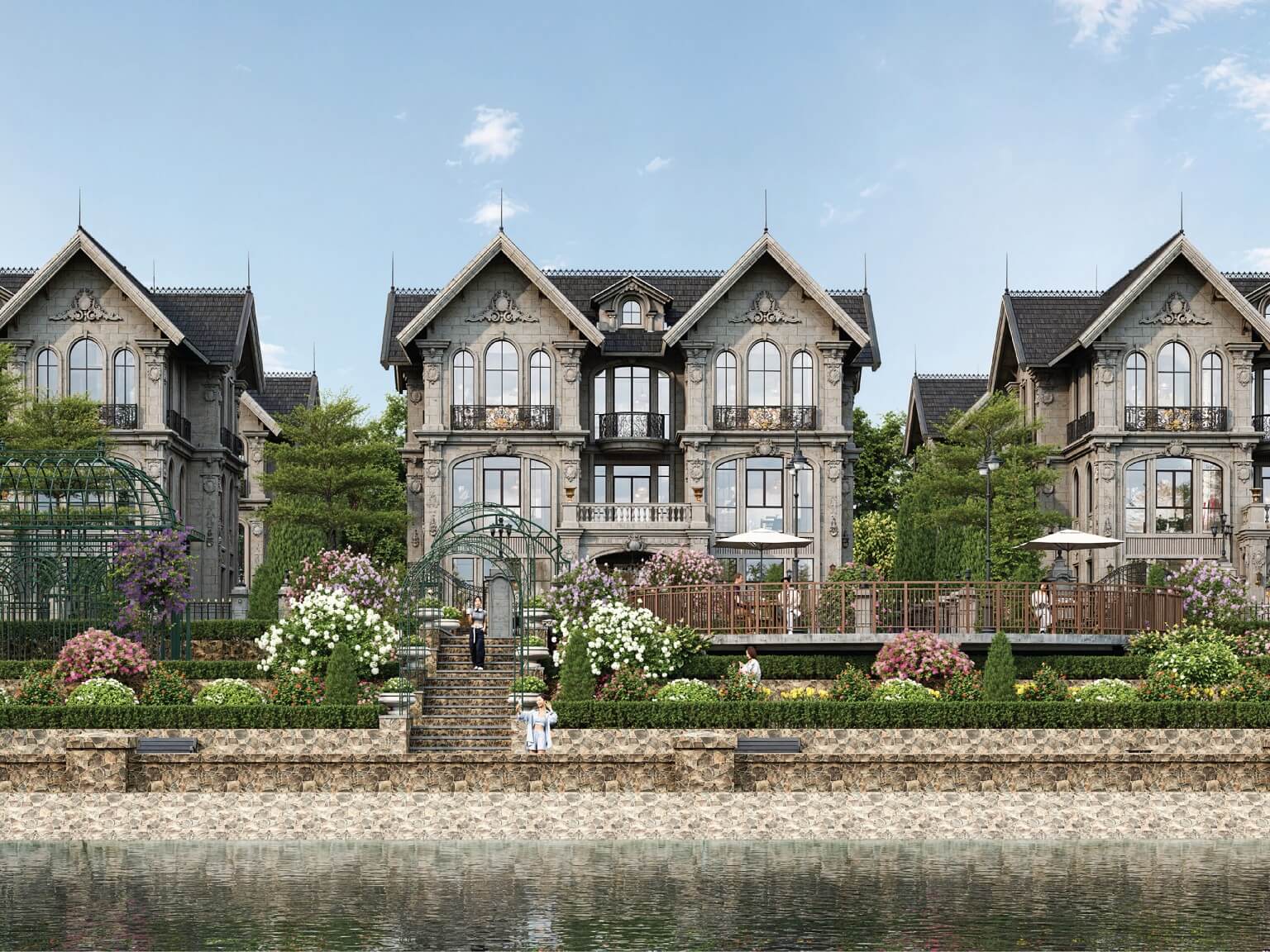 Phân khu nhà liền kề được phát triển với diện tích đa dạng, từ 70m2 đến 150m2, phù hợp với nhiều đối tượng khách hàng. Kiến trúc tân cổ điển châu Âu được áp dụng xuyên suốt, tạo nên một không gian sống sang trọng và hiện đại.