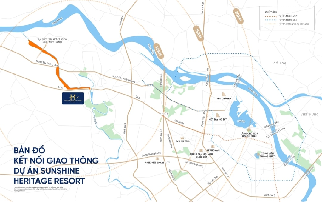 Đặc biệt, dự án nằm gần các tuyến đường huyết mạch như Đại lộ Tây Thăng Long, vành đai 3.5, và vành đai 4, cùng với Cầu Thượng Cát, mang lại sự kết nối nhanh chóng giữa khu vực phía Tây và trung tâm thủ đô. Vị trí này không chỉ thuận tiện cho cư dân mà còn tạo ra tiềm năng phát triển lớn cho các nhà đầu tư bất động sản.