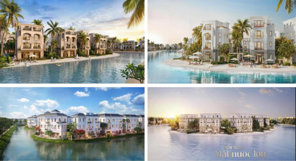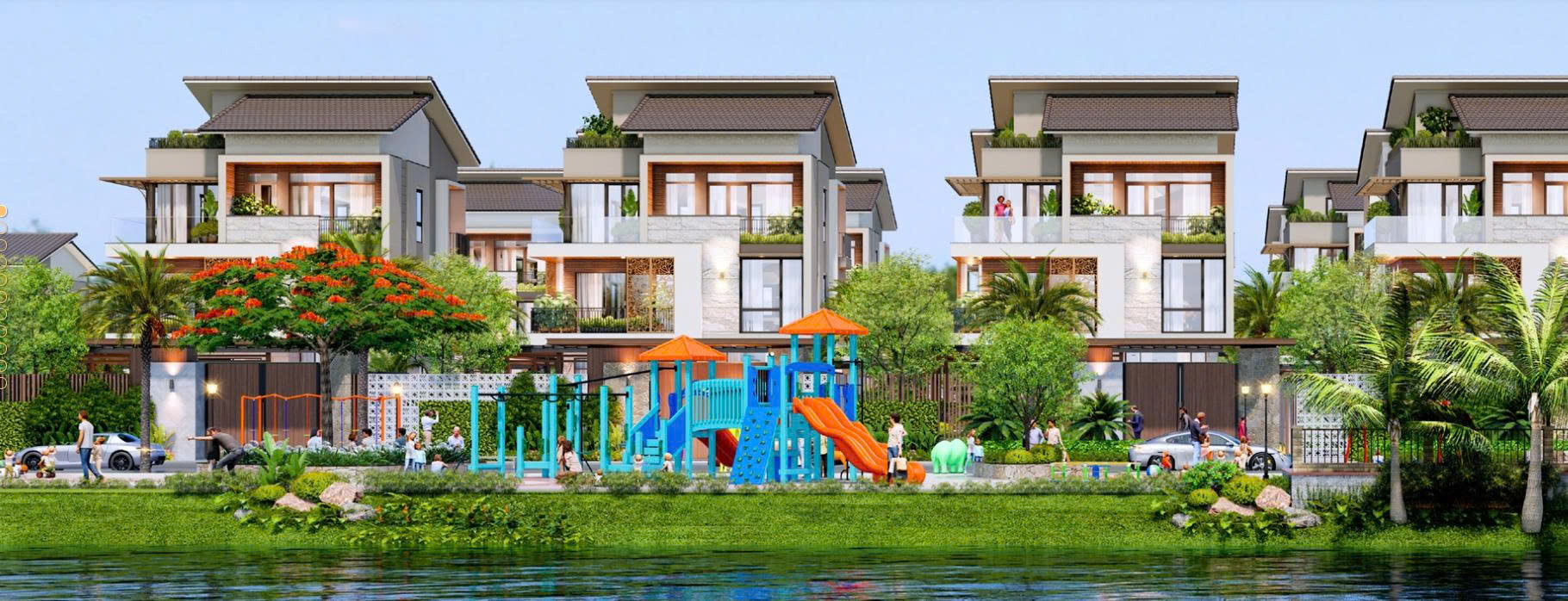 • Năm khu biệt thự ven sông: Dự án bao gồm năm khu biệt thự ven sông với quy mô và đặc điểm khác nhau.