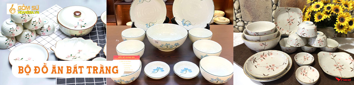 Bộ bàn ăn đa dạng với nhiều sản phẩm chính và phụ, phù hợp với mọi nhu cầu của khách hàng. Thường thì bộ đồ ăn sẽ bao gồm chén cơm, chén chấm, tô sứ, dĩa ăn và tô cạnh.