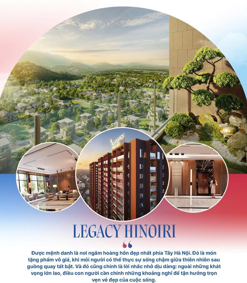 Legacy Hinoiri là dự án căn hộ cao cấp tiêu chuẩn Nhật Bản nằm tại trung tâm khu công nghệ cao Hòa Lạc, do An Thịnh Group làm chủ đầu tư được xây dựng và phát triển với tiêu chuẩn chất lượng hàng đầu, mang đến một không gian sống chuẩn Nhật, vượt trên cả sự mong đợi của khách hàng. Dự án nổi bật với sự cân bằng hoàn hảo giữa nhịp sống hiện đại, tiện nghi và những khoảnh khắc “sống an” chan hòa cùng thiên nhiên. Với không gian sống mới, chất lượng và tiện nghi, căn hộ cao cấp Legacy Hinoiri Phú Cát Hòa Lạc tạo nên một môi trường sống xanh, sạch, đẹp, đi kèm hệ thống dịch vụ tiện ích đạt tiêu chuẩn 5 sao, được quản lý theo mô hình hiện đại bậc nhất của người Nhật.
