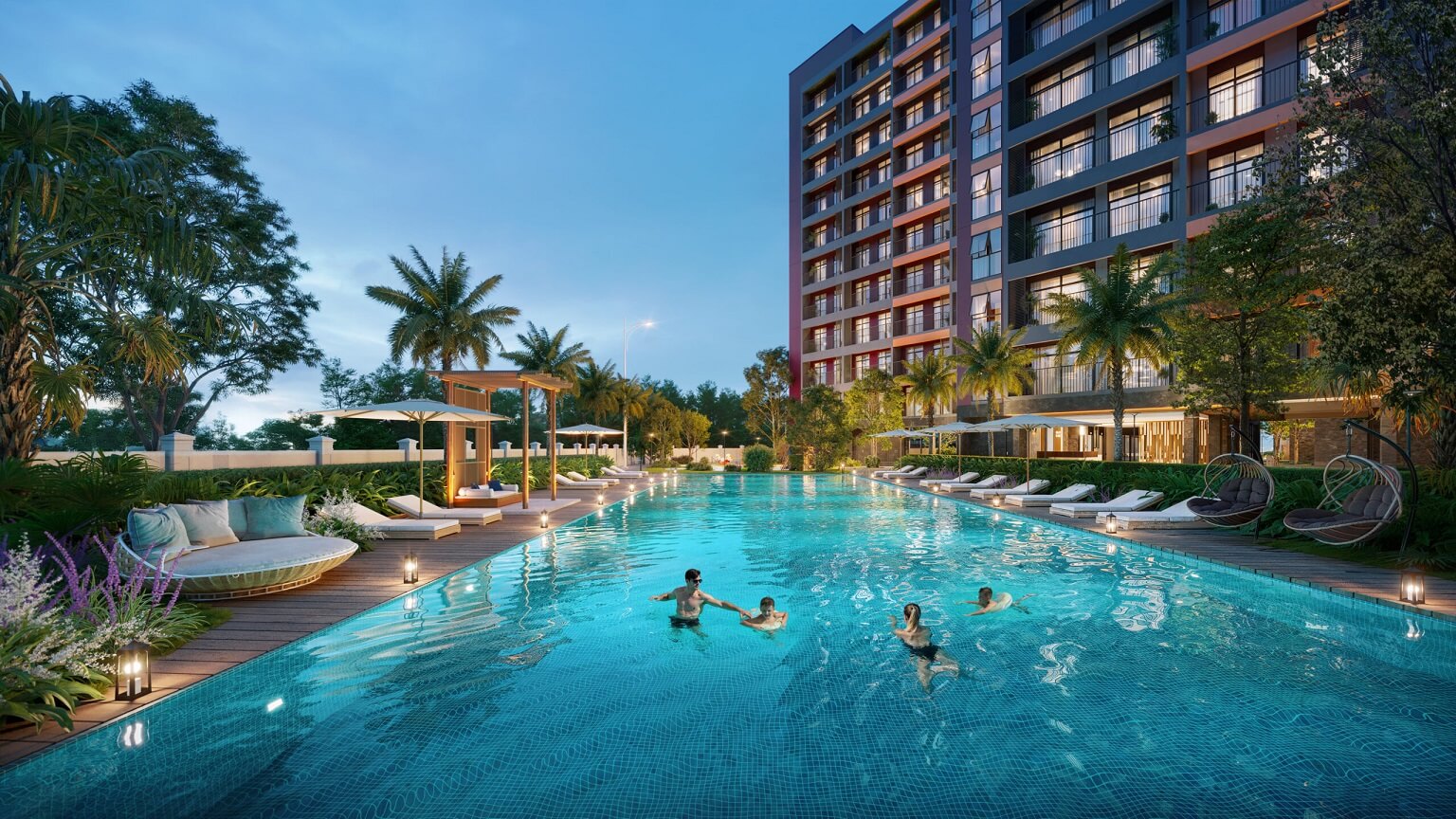 • Tầng 5: Bể bơi ngoài trời, phòng gym, yoga, khu vui chơi trẻ em, và không gian sinh hoạt cộng đồng.