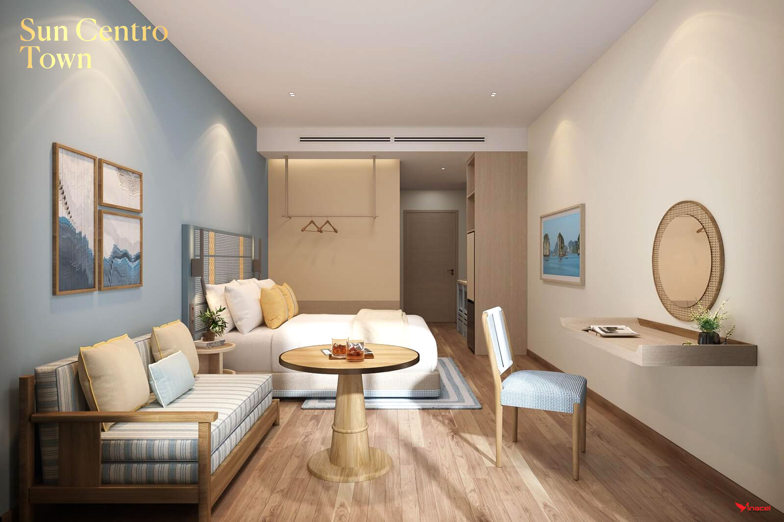 Lấy cảm hứng từ Vịnh Hạ Long, mọi chi tiết trong Sun Centro Town đều được chăm chút nhằm mang lại chuẩn sống cao cấp. Dự án do các đơn vị tư vấn hàng đầu thế giới thiết kế, kết hợp hài hòa phong cách kiến trúc đương đại cùng bản sắc Á Đông. Các căn hộ được bàn giao tiêu chuẩn nội thất cao cấp, giúp khách hàng rút ngắn thời gian hoàn thiện và vận hành căn hộ.