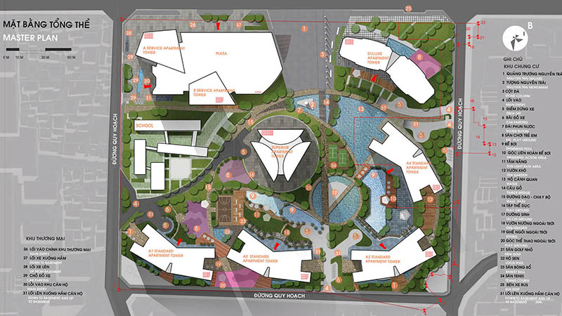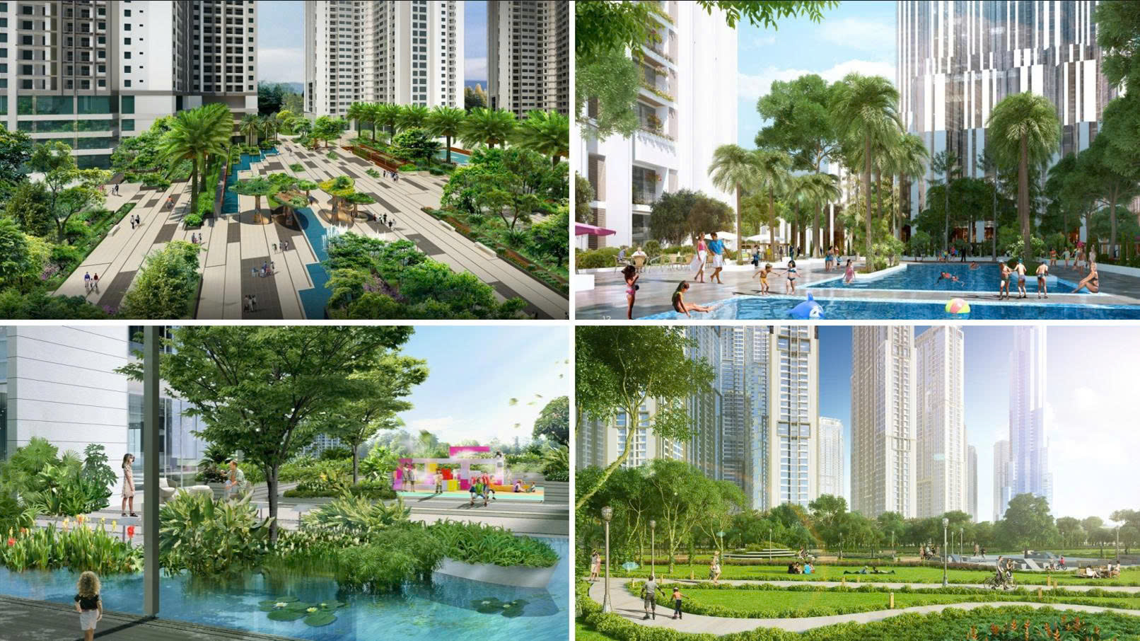 • Công viên & cảnh quan: Quảng trường trung tâm, khu vườn Nhật, công viên xanh tạo không gian thư giãn.
