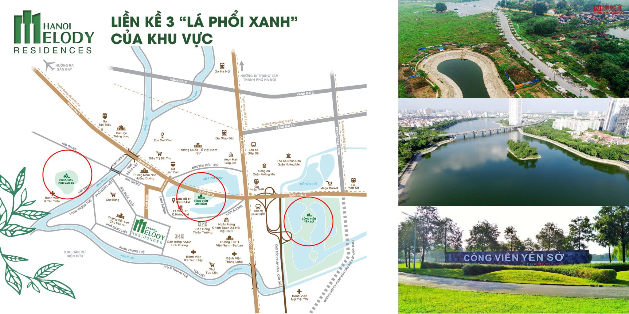 Hà Nội Melody Residences sở hữu tầm nhìn Panorama view 3 lá phổi xanh của khu vực, cư dân sẽ được thỏa sức ngắm nhìn Công viên hồ Yên Sở, hồ Linh Đàm, công viên Chu Văn An và thư thái hít thở bầu không khí trong lành của thiên nhiên tươi mát, cảm nhận vạn vật ngoài kia lung linh hương sắc.