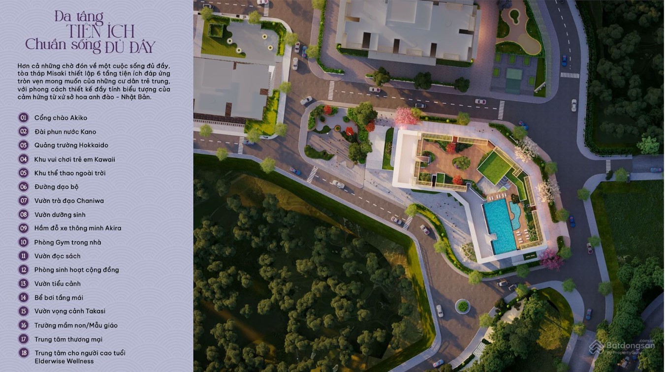 Misaki Tower còn sở hữu hệ sinh thái tiện nghi như resort với các tiện ích nghỉ dưỡng chuẩn Nhật như vườn thiền, bể bơi vô cực tầng mái, khu vực trà đạo và hồ cá Koi. Tất cả đều được kiến tạo dựa trên chuẩn mực cao cấp nhất, chạm tới xúc cảm của cư dân, mang lại những phút giây bình yên và sảng khoái cho gia đình sau những ngày dài năng động.