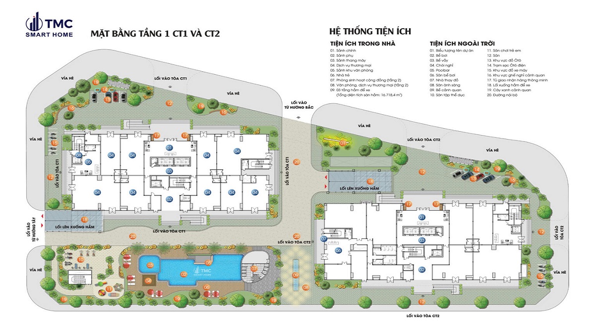 Dự án đã hoàn thiện xong 3 tầng hầm sẵn sàng ký Hợp đồng Mua bán ngay, pháp lý sổ đỏ lâu dài. TMC Smart Home tích hợp hơn 40 tiện ích nội khu cao cấp đáp ứng tối đa nhu cầu sống và sinh hoạt cho cư dân.