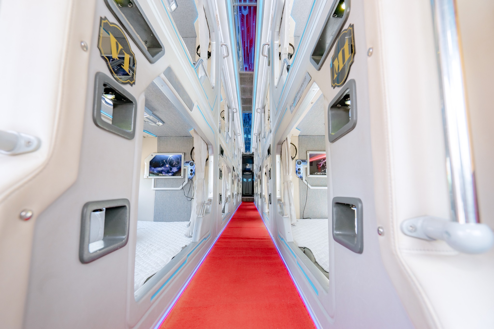 Tiện ích cao cấp: Mỗi giường được trang bị rèm che riêng tư, tivi, tai nghe, cổng sạc USB, đèn đọc sách độc lập, giúp quý khách tận hưởng không gian cá nhân tối ưu.