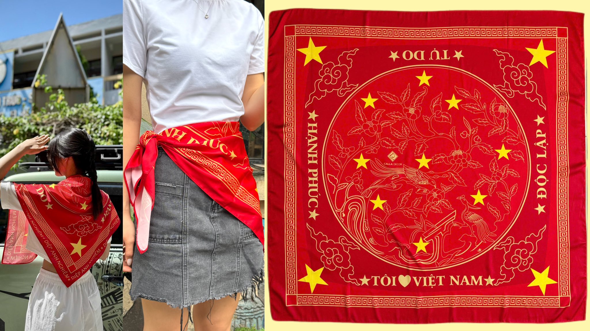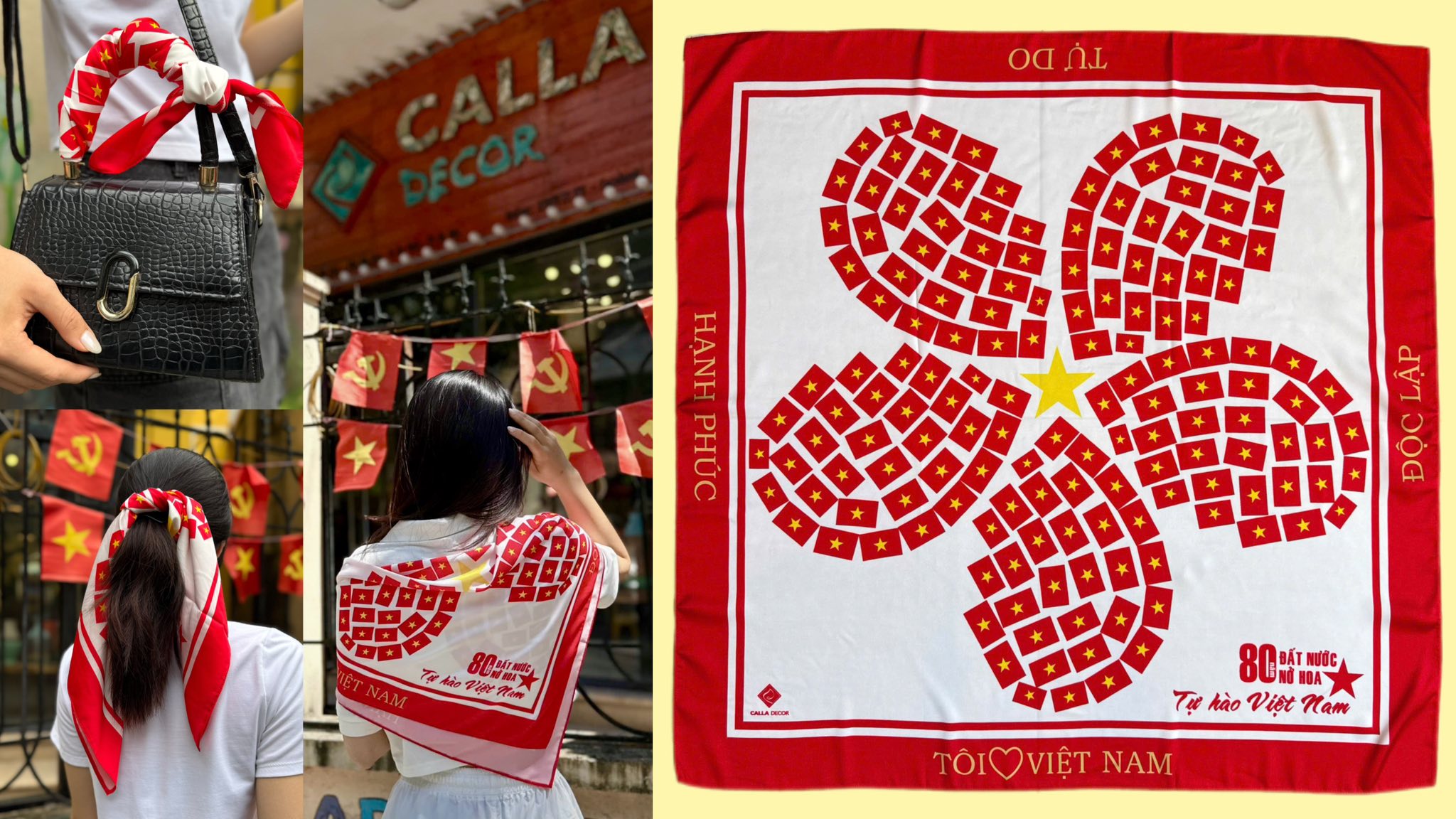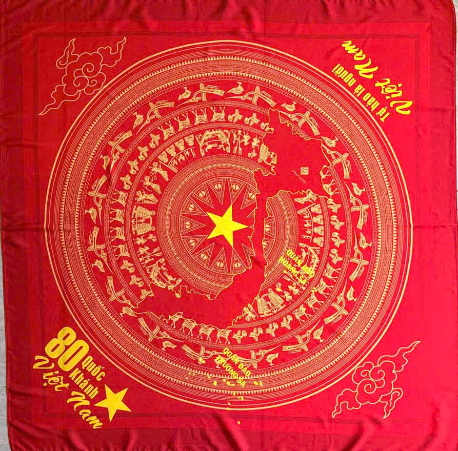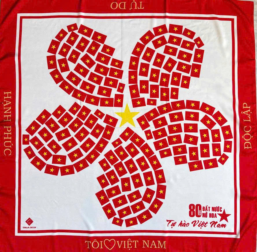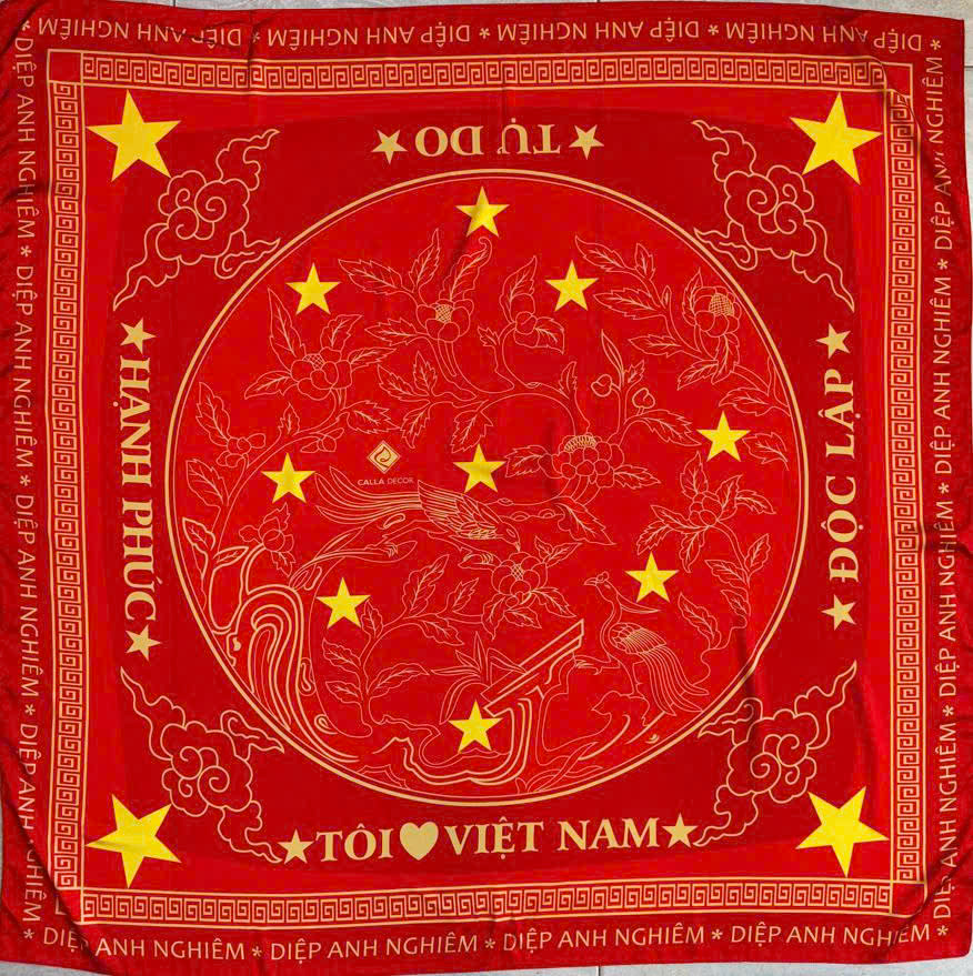 Khăn lụa đỏ "Tôi yêu Việt Nam": Họa tiết nổi bật, thích hợp cho các dịp lễ.