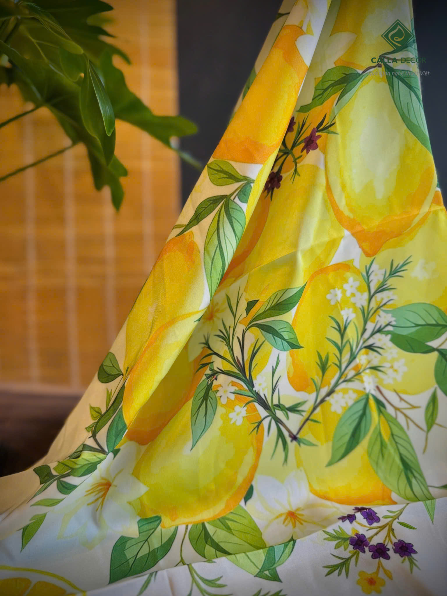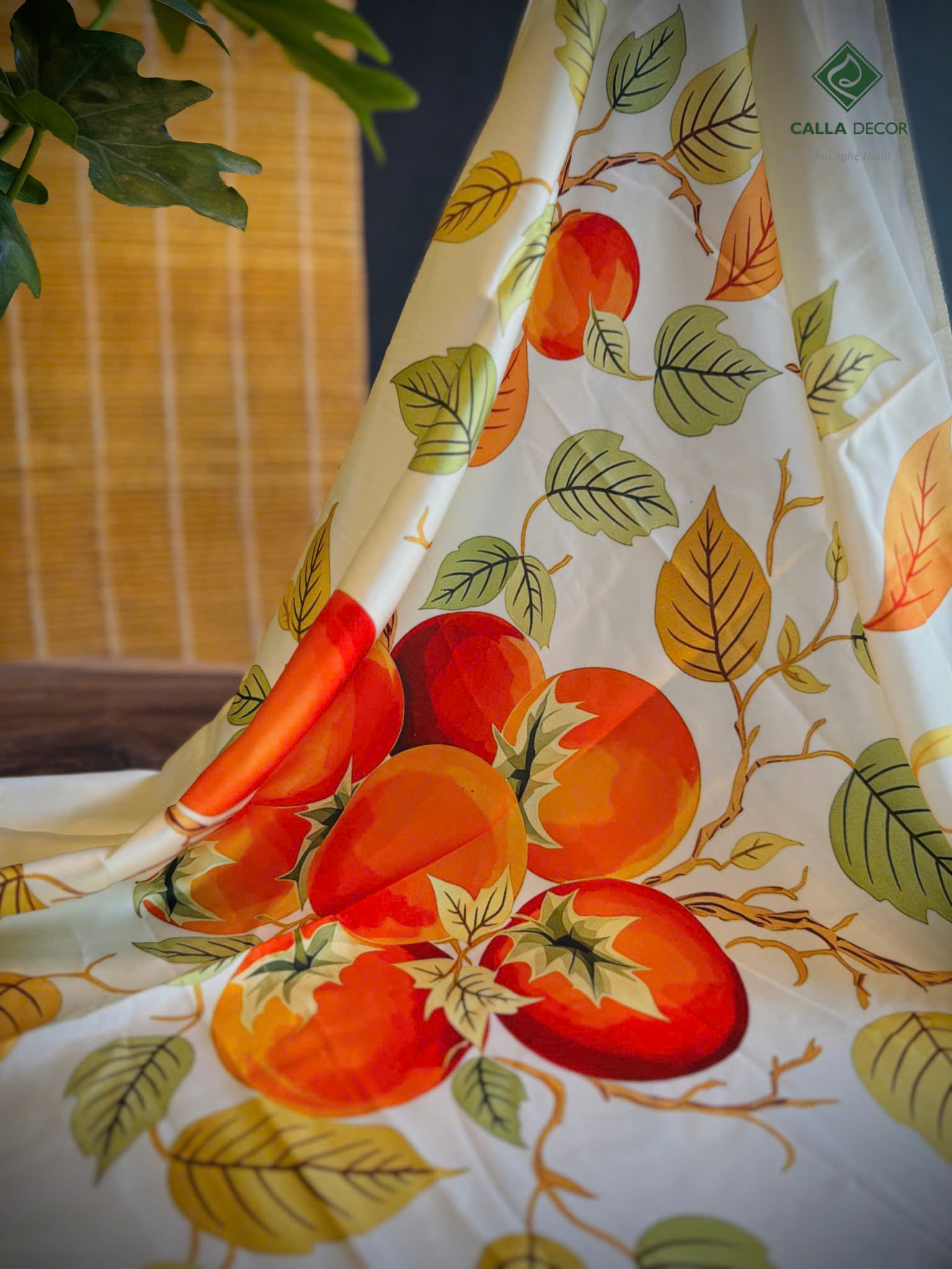 Khăn lụa họa tiết quả hồng/quả chanh: Mang phong cách hiện đại, trẻ trung.