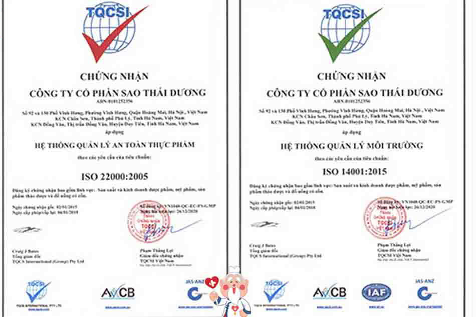 • Sản phẩm được sản xuất tại Công ty cổ phần Cao Thái Dương, doanh nghiệp có lịch sử thành lập 21 năm với vị thế vững chắc trên thị trường sản phẩm bảo vệ sức khỏe trong và ngoài nước. Sao Thái Dương đã liên tiếp nhận được những giải thưởng lớn khẳng định uy tín thực sự của công ty.
