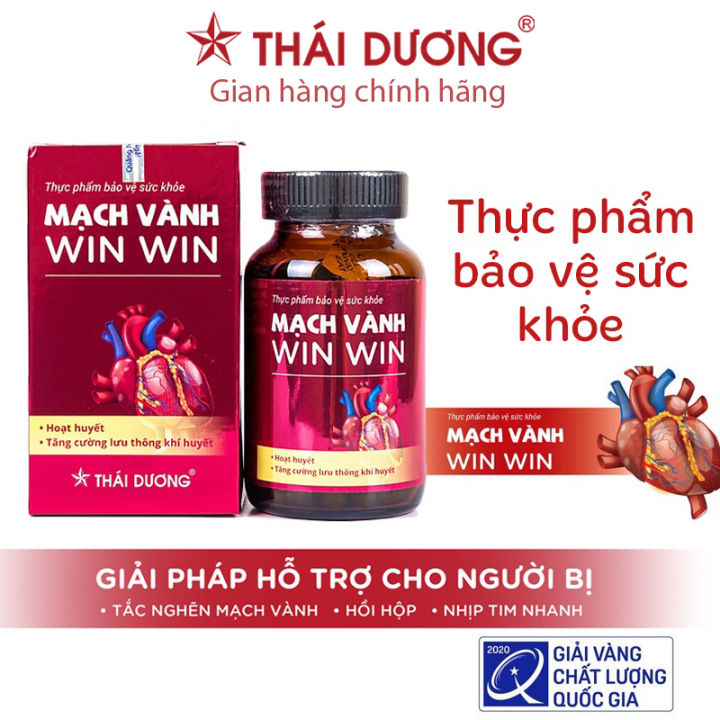 Mạch vành Win Win là thực phẩm bảo vệ sức khoẻ thuộc nhóm hỗ trợ bệnh về tim mạch. Sản phẩm được sản xuất bởi nhà máy đạt chuẩn GMP – Sao Thái Dương, tiện lợi, an toàn, dễ dàng sử dụng.