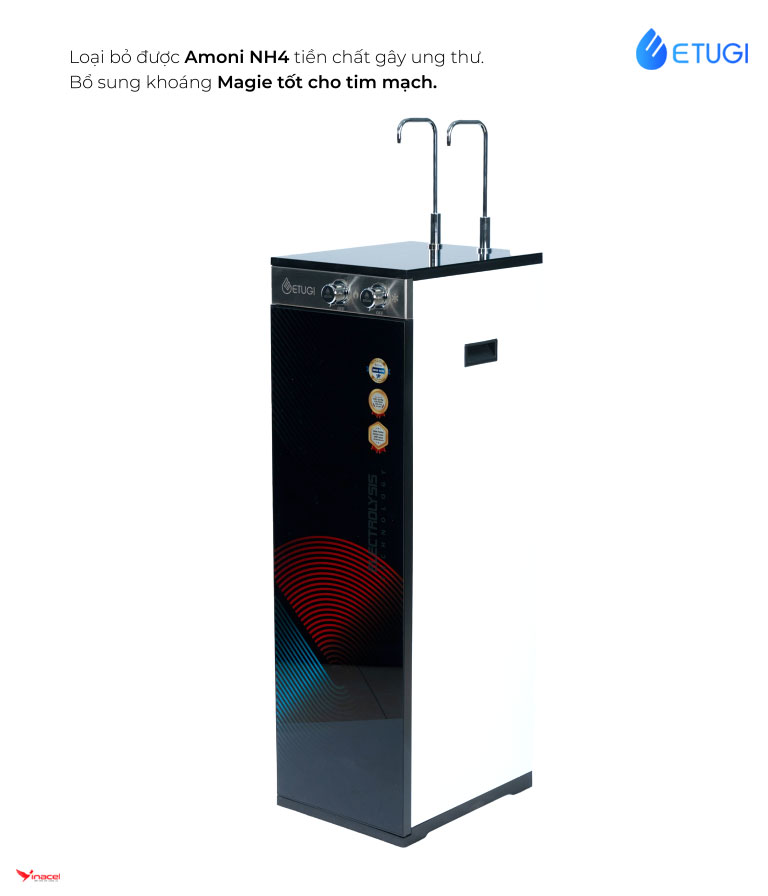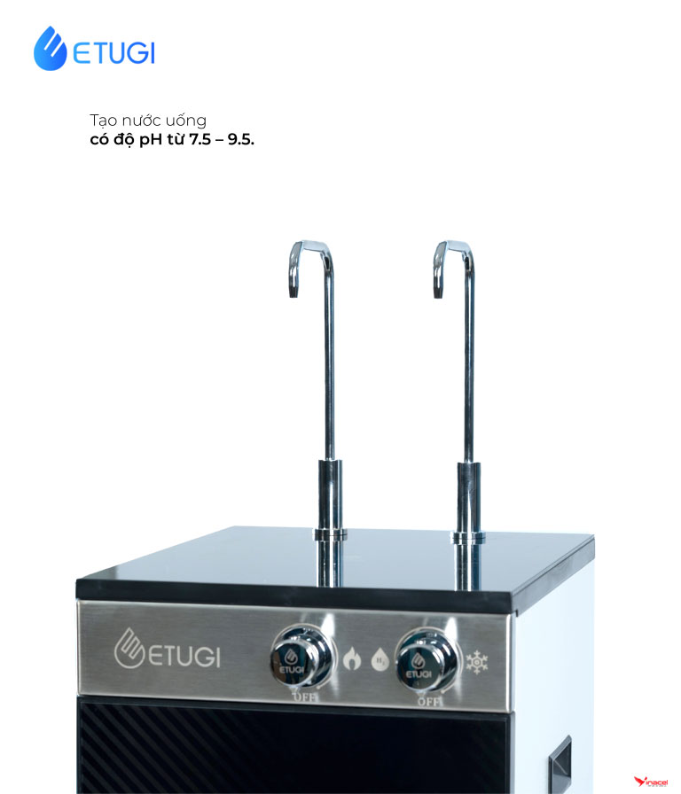• Tạo nước ion kiềm với độ ph lý tưởng 8.5 – 9.5: Cơ thể con người hoạt động tốt nhất khi duy trì độ pH nội môi ở mức 7.35 – 7.45. Tuy nhiên, chế độ ăn uống hiện đại thường chứa nhiều thực phẩm axit, khiến cơ thể dễ rơi vào trạng thái axit dư thừa. Nước ion kiềm ETUGI với độ pH lý tưởng 8.5 – 9.5 là giải pháp hoàn hảo giúp trung hòa axit dư thừa, đưa cơ thể về trạng thái cân bằng pH lý tưởng. Nhờ vậy, mang lại nhiều lợi ích cho sức khỏe như: Cân bằng pH cơ thể, trung hòa axit dư thừa, hỗ trợ phòng ngừa bệnh tật. Tăng cường hệ miễn dịch, hỗ trợ tiêu hóa và hấp thu dưỡng chất hiệu quả. Giúp cơ thể trao đổi chất tốt hơn, giảm nguy cơ mắc các bệnh mãn tính.