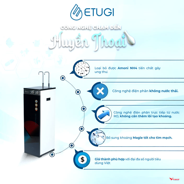 • Với những ưu điểm vượt trội, máy lọc nước ion kiềm ETUGI mang đến nguồn nước hoàn hảo, đáp ứng mọi nhu cầu của bạn. Sau đây là 6 lợi ích được tạo ra từ máy lọc nước ion kiềm ETUGI