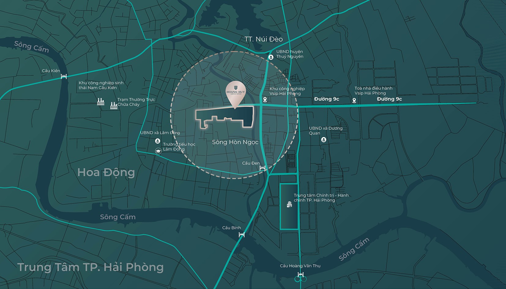 Một trong những lợi thế lớn nhất của dự án chính là vị trí chiến lược ngay trong lòng khu đô thị Hoàng Huy Green River tại Hoa Động – Thủy Nguyên – Hải Phòng. Đây là khu vực đang được quy hoạch trở thành trung tâm hành chính – kinh tế mới của thành phố.