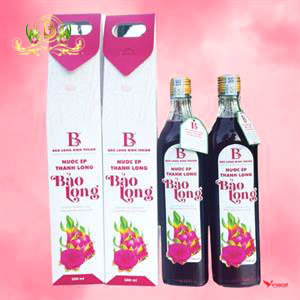 Nước ép thanh long Bảo Long là dạng thức uống lên men tự nhiên từ thanh long đỏ Bình Thuận, không pha men, không chất bảo quản, không chất tạo màu, có màu đỏ đặc trưng của thanh long đỏ, an toàn, chất lượng, tốt cho sức khỏe.