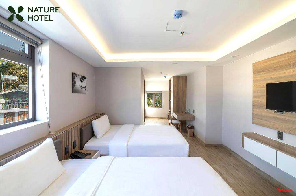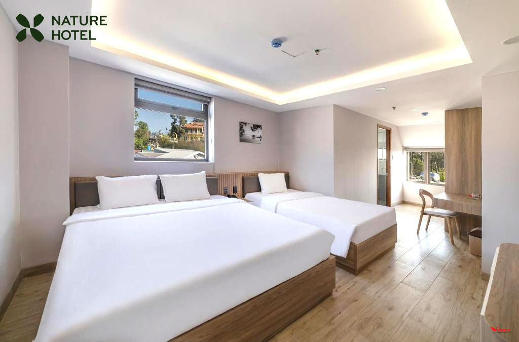 Nature Hotel đem đến cho du khách các phòng ngủ vô cùng ấn tượng. Nơi đây sử dụng thiết kế theo phong cách hiện đại, đi kèm với đó là sự kết hợp màu sắc tươi sáng, trẻ trung, được du khách rất yêu thích. Mỗi phòng ngủ đều được trang bị đầy đủ các tiện nghi cần thiết. Bạn cũng sẽ được tận hưởng khung cảnh tự nhiên trong lành qua khung cửa kính lớn được khách sạn tinh tế bố trí ở mỗi không gian nghỉ ngơi.