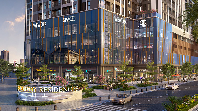 - Khu thương mại mua sắm sôi động: Được thiết kế sang trọng với nhiều thương hiệu cao cấp, đa dạng loại hình sản phẩm. Các dãy shophouse đa dạng các loại dịch vụ