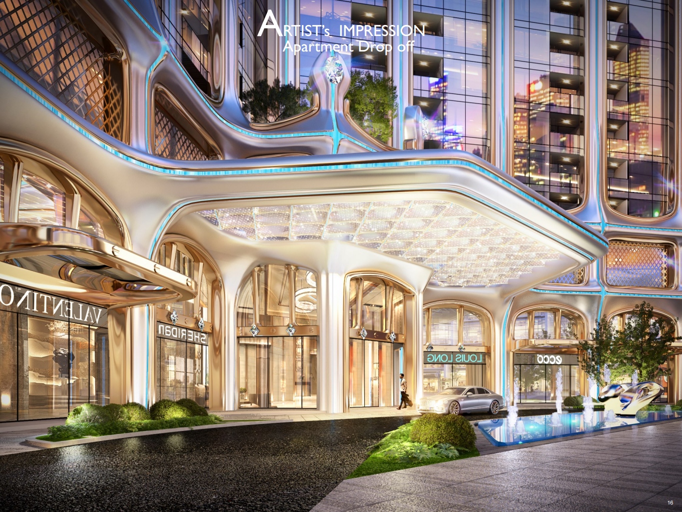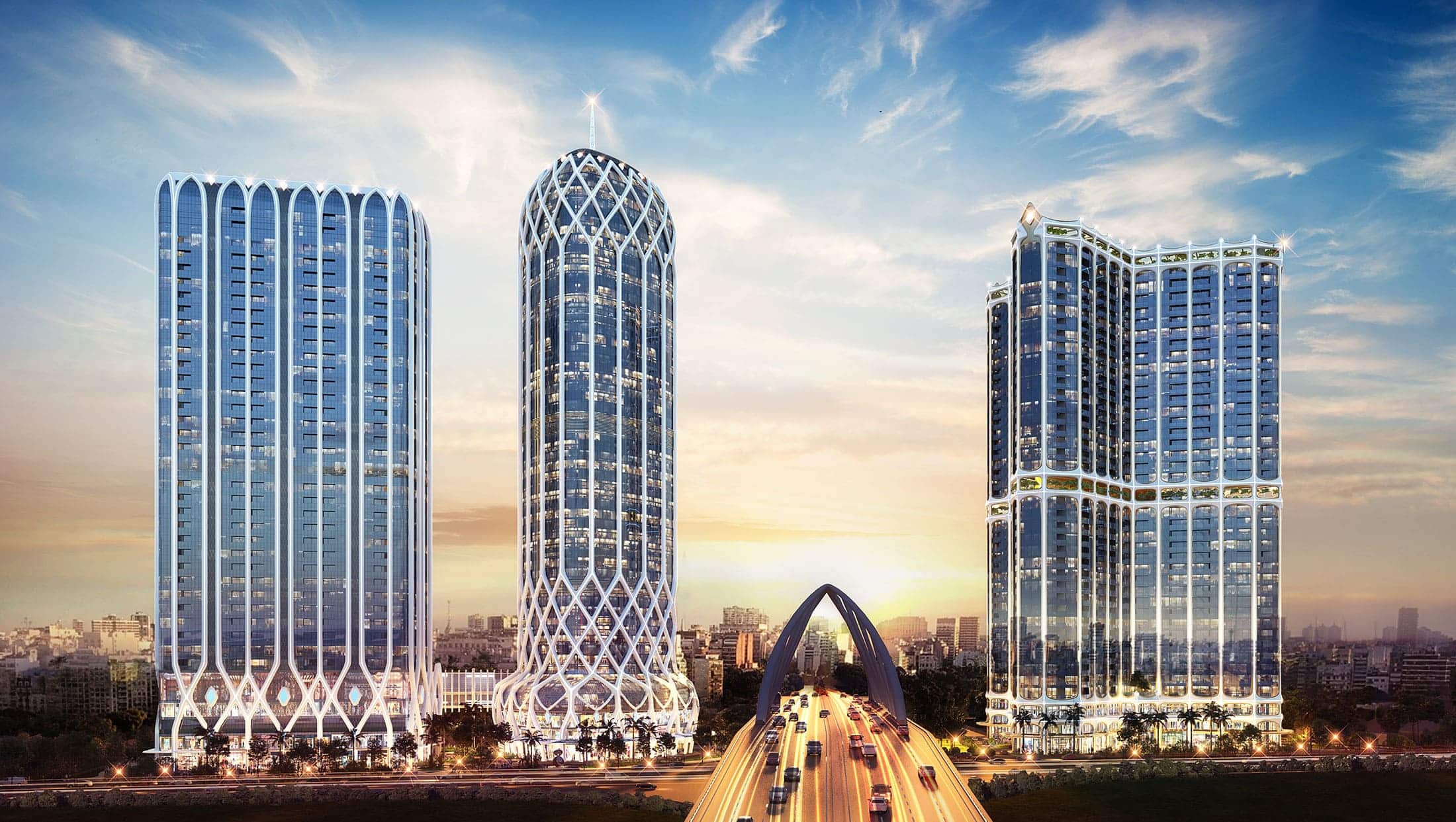 Dự án bao gồm 1 tòa tháp cao ~40 tầng, thiết kế dạng tam giác cong, mỗi cánh mở ra theo góc 144 độ, giúp tối ưu hóa tầm nhìn cho tất cả các căn hộ.
