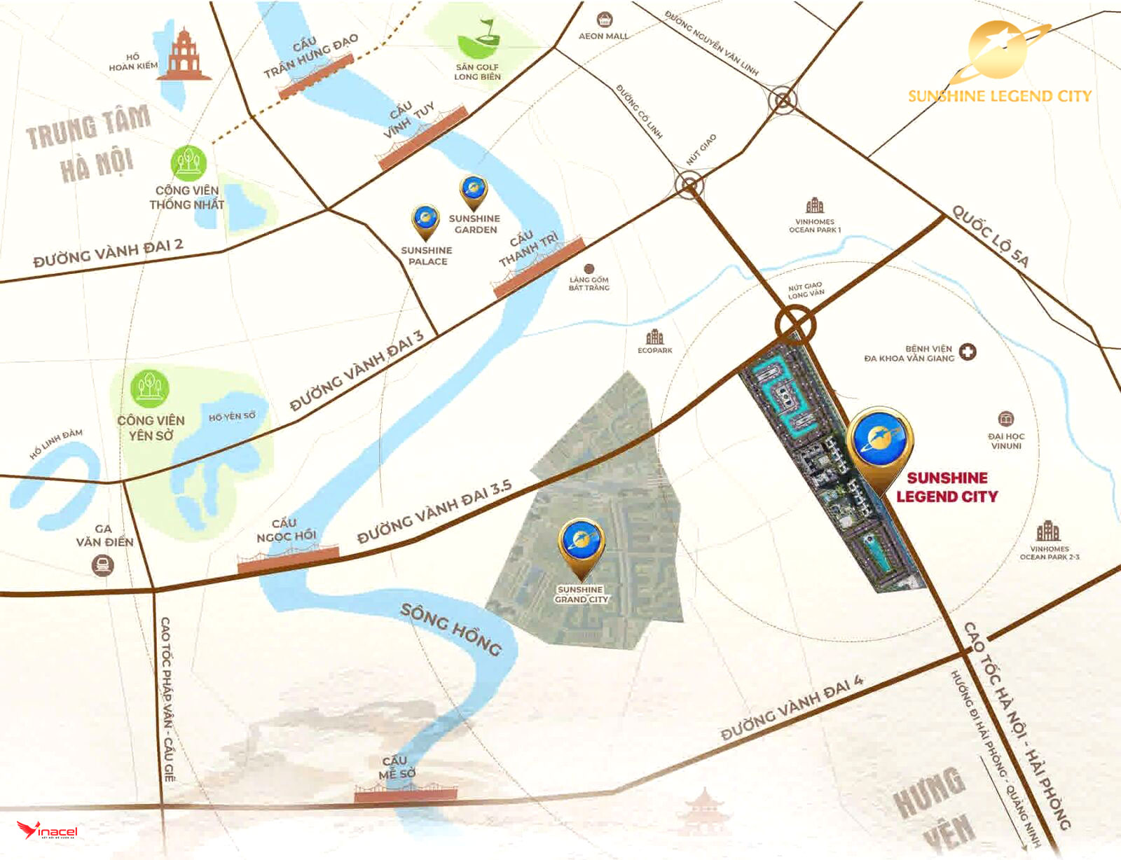 • Dự án còn được hưởng lợi từ các công trình giao thông trọng điểm như cầu Ngọc Hồi (dự kiến khởi công ngày 19/8/2025), cầu Trần Hưng Đạo, và cầu Mễ Sở, giúp rút ngắn thời gian di chuyển đến trung tâm Hà Nội xuống còn 15 phút. Với hạ tầng giao thông đồng bộ và làn sóng đầu tư mạnh mẽ vào khu Đông Hà Nội, Sunshine Legend City Hưng Yên sở hữu tiềm năng tăng giá bất động sản vượt trội, cạnh tranh với các khu đô thị lớn như Ecopark, Vinhomes Ocean Park, và Masteri Trinity Square.