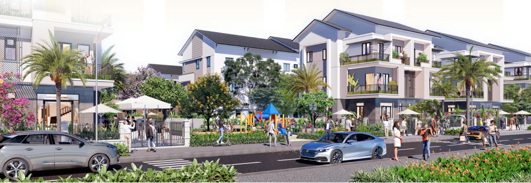 • Sản phẩm: Bao gồm nhà phố liền kề và shophouse thương mại, được thiết kế tối ưu để ở và kinh doanh.