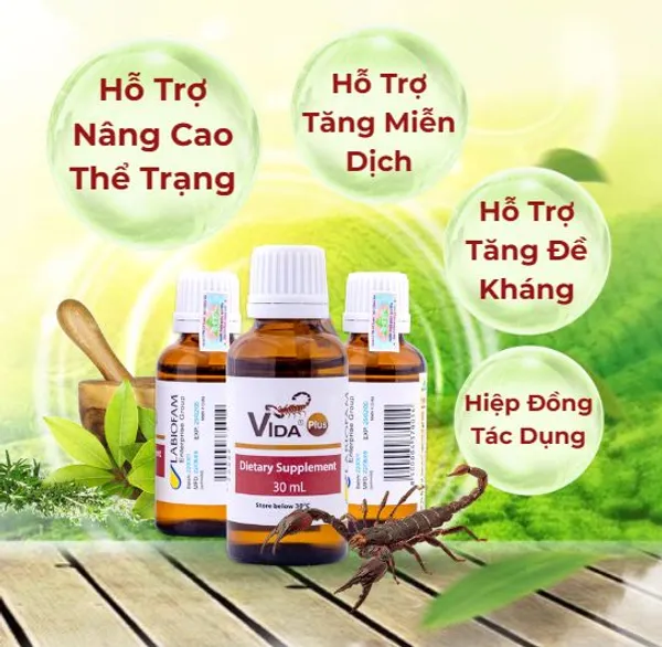 Vida Plus là sản phẩm cấp phép bởi Cục Dược Cuba với chiết xuất của nọc bọ cạp xanh Cuba có công dụng hỗ trợ điều trị bệnh nhân u bướu tăng cường khả năng miễn dịch giúp cơ thể chống lại tế bào ung thư từ bên trong. Hỗ trợ cải thiện thể trạng cho người u bướu do thể trạng người bị u bướu thường cảm thấy kiệt sức, mệt mỏi, đau đớn, mất ăn mất ngủ và luôn thiếu năng lượng do sự phát triển của khối u.