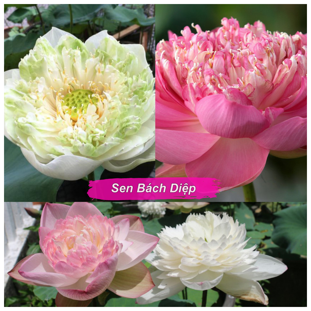 SEN BÁCH DIỆP còn có tên khác là Sen Thái Lùn, Sen Cung Đình hay Sen Quan Âm với 2 màu trắng và hồng rất đẹp. Cây sen có độ cao thấp hơn so với sen việt, đường kính từ 30cm - 40cm, những bông hoa nở rộ xinh tươi với trăm cánh hoa tạo nên một sức hút kỳ lạ.