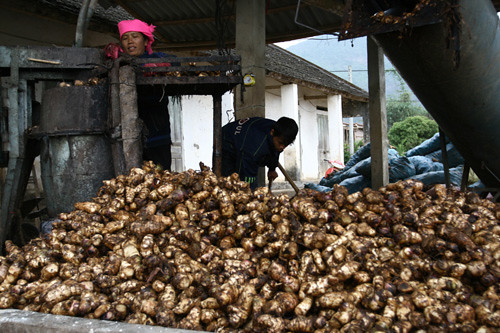 Bà Hường cho biết, nhà mình trồng được khoảng 1 ha cây dong riềng, chủ yếu gia đình bà mua bột dong riềng từ các hộ gia đình nông dân trong xã là nhiều.
