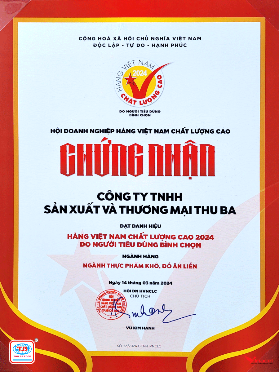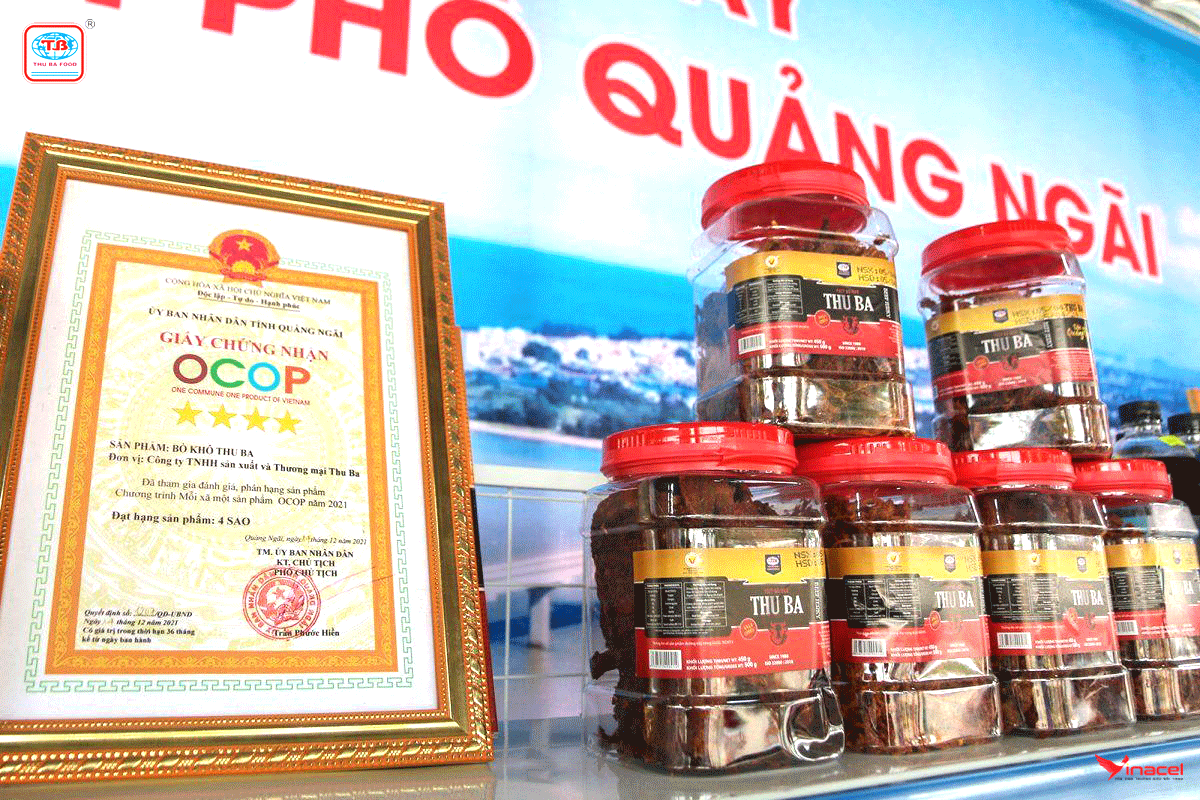 Sản phẩm thịt bò khô Thu Ba là sản phẩm đạt được nhiều chứng nhận như: