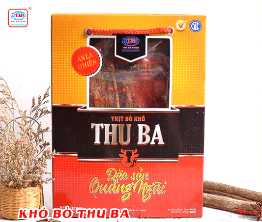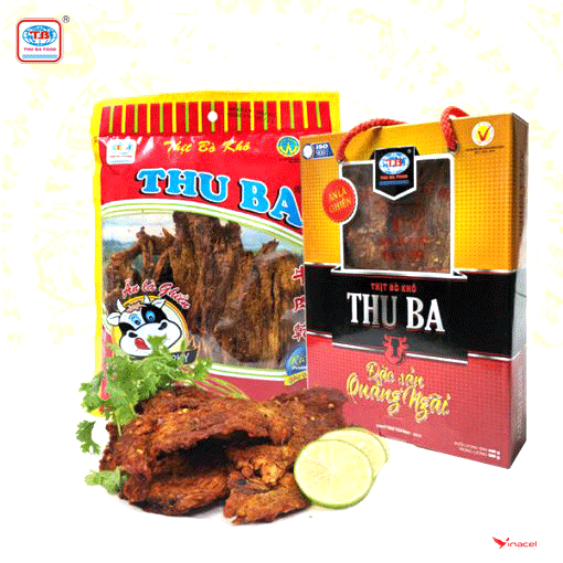 Khô bò Thu Ba là thương hiệu thịt bò khô ngon nức tiếng miền Trung. Khô bò Thu Ba được làm từ thịt bò tươi, ngon, sạch, có hương vị hấp dẫn và hương thơm đặc trưng khó lẫn với các sản phẩm khô bò khác. Khô bò Thu Ba là món quà ý nghĩa dành tặng người thân, bạn bè đồng nghiệp trong những dịp lễ, Tết...