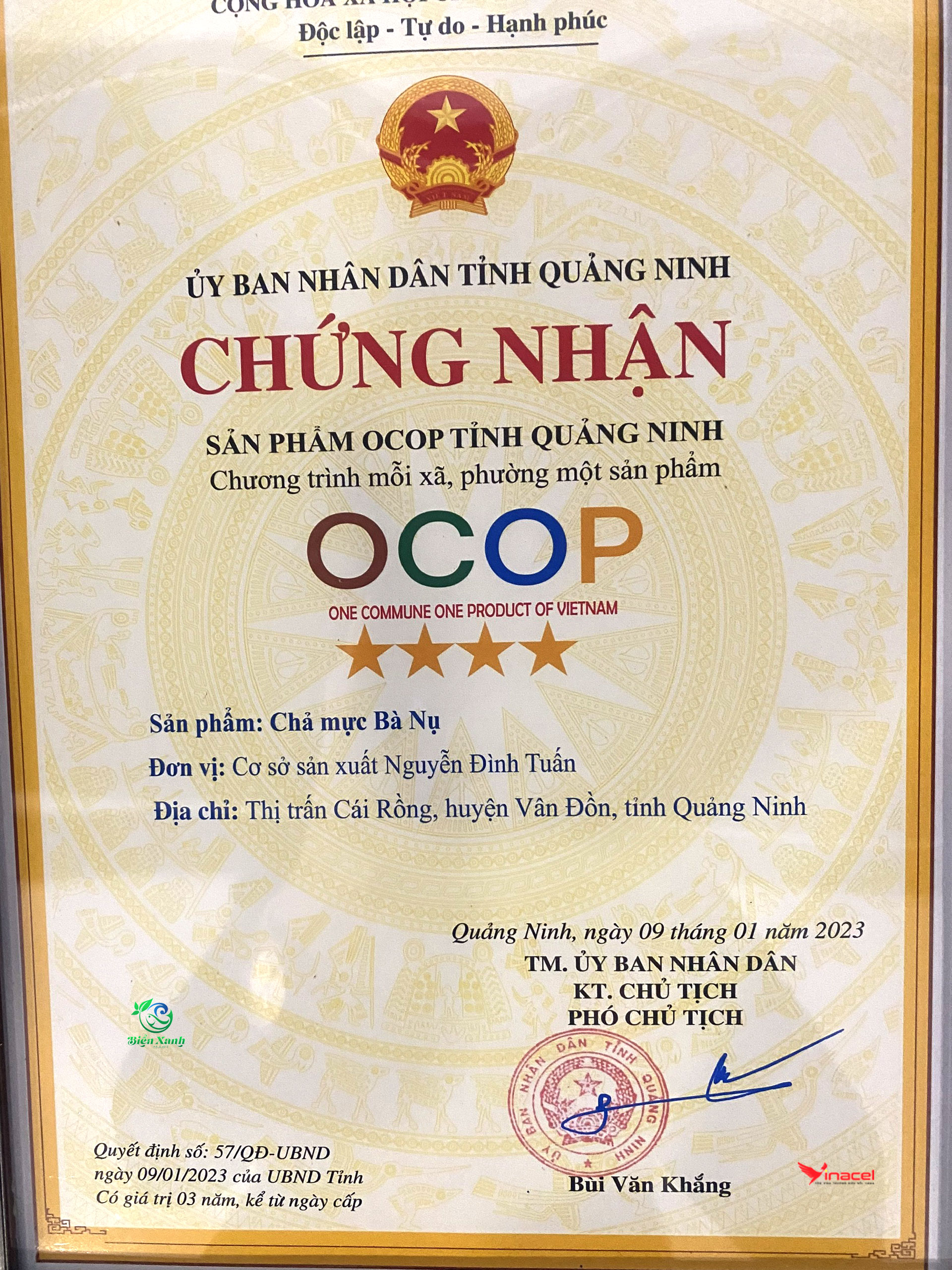 Chả mực Bà Nụ (Vân Đồn) là sản phẩm OCOP được xếp hạng 3 sao, được bán rộng rãi trong, ngoài tỉnh, được khách hàng ưa chuộng.
