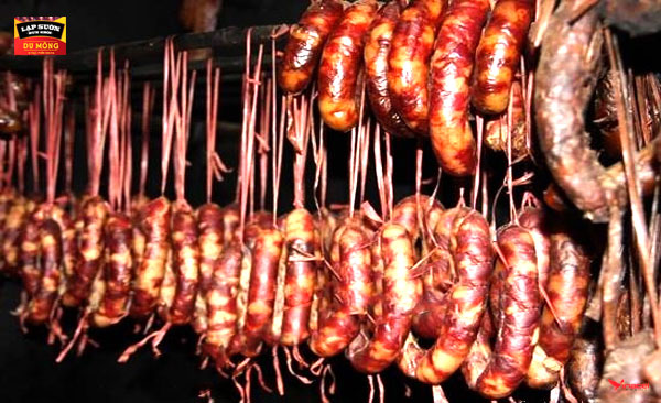 Lạp xưởng sau khi ướp gia vị được đem treo gác bếp, hun khói từ củi rừng tạo ra mùi thơm đặc trưng không lẫn vào đâu được. Quá trình gác bếp không chỉ giúp lạp xưởng khô tự nhiên mà còn thấm đẫm hương khói, tạo nên vị ngon đặc biệt.