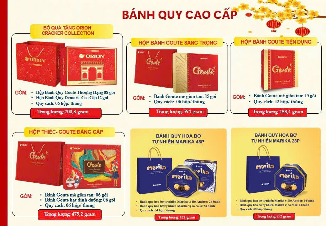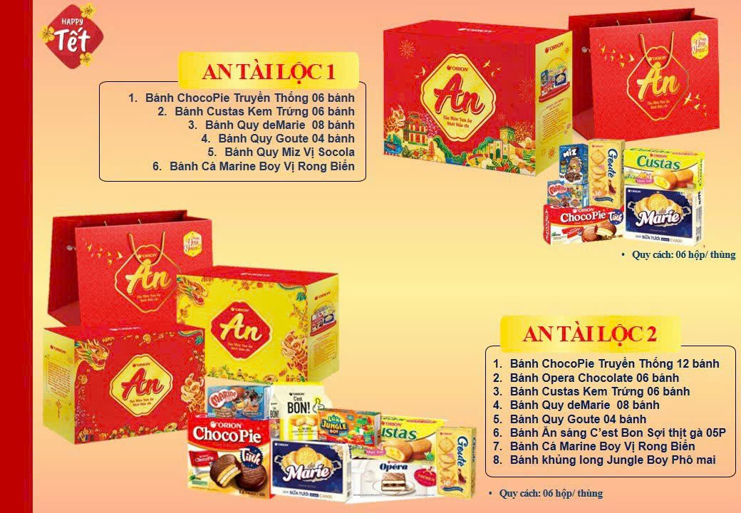 Chỉ còn vài tháng nữa là đến Tết Nguyên Đán bánh kẹo Orion đã tràn ngập sắc đỏ trên thị trường, quý khách hàng cần làm quà biếu hãy liên hệ ngay với chúng tôi. Để mua được sản phẩm chính hãng, với giá cả hợp lý, được dược sĩ tư vấn tận tình, kết hợp với dịch vụ giao hàng nhanh chóng, hãy liên hệ với chúng tôi ngay qua hotline hoặc đặt hàng trực tiếp ngay tại đây.