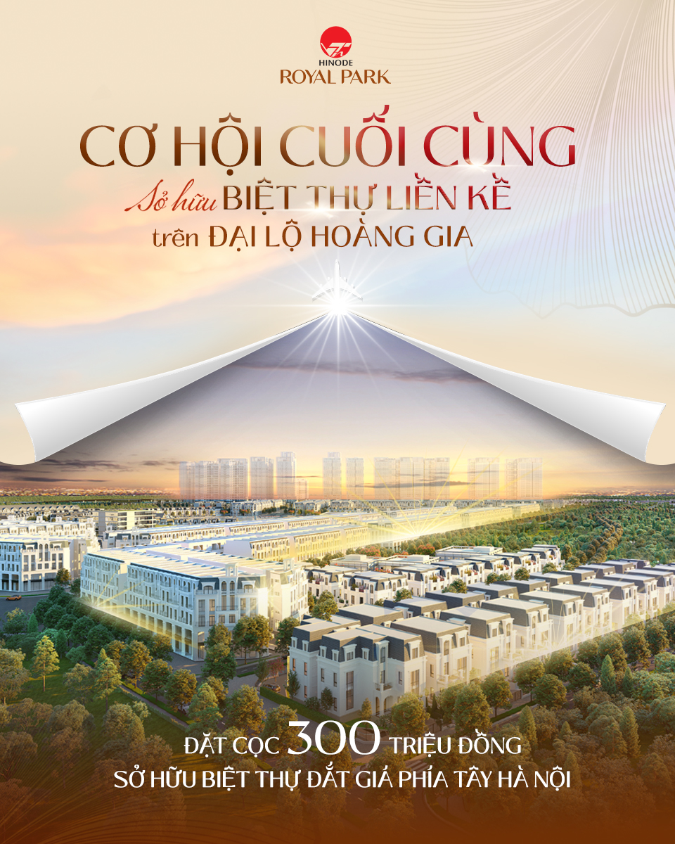 Hinode Royal Park (KĐT Kim Chung - Di Trạch) là dự án đô thị quy mô 146,7 ha tại Hoài Đức, Hà Nội do WTO làm chủ đầu tư. Nổi bật với vị trí giao điểm Quốc lộ 32 và Vành đai 3.5, dự án đang phát triển đồng bộ biệt thự, liền kề, shophouse và chung cư cao tầng. Dự án hướng tới chuẩn sống hiện đại với tiện ích trường học, hồ điều hòa và cảnh quan cây xanh.