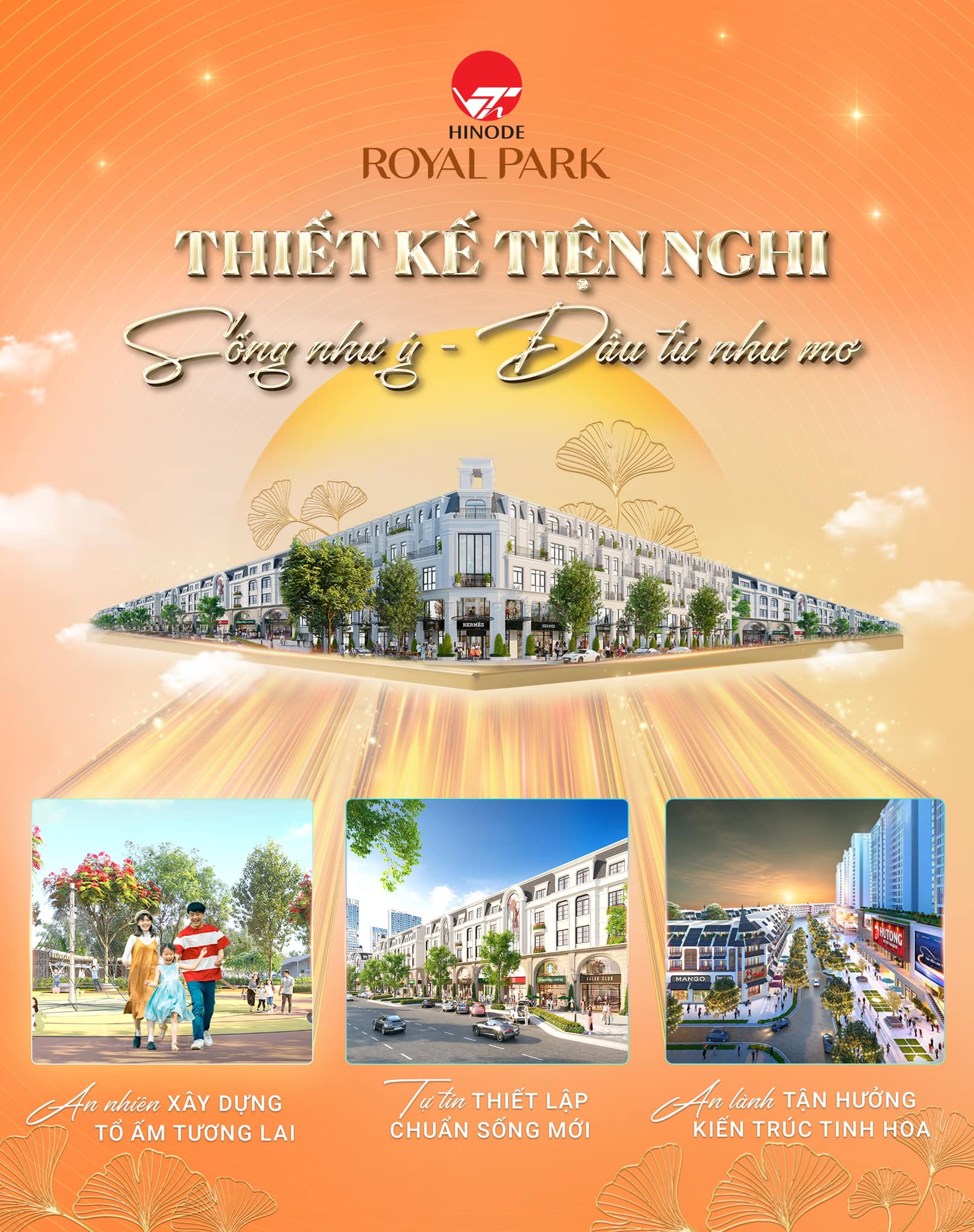 Hinode Royal Park là sự kết hợp tinh tế giữa phong cách Anh, Ý, Nhật Bản, Đông Dương, và Hy Lạp - một sự hòa quyện hài hòa của các nền văn hóa độc đáo. Đây là sản phẩm hứa hẹn mang lại lợi nhuận đầu tư cao, tiến độ thi công Hinode Royal Park cũng là vấn đề được Quý khách hàng quan tâm nhất đối với khu đô thị phía Tây Hà Nội.