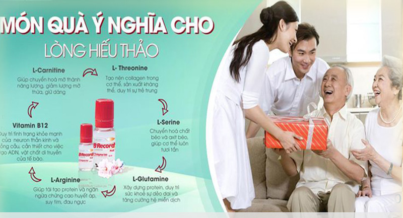 B Record Plus được biết đến là một loại thực phẩm chức năng với sự kết hợp của vitamin B12 và các acid amin thiết yếu giúp tăng cường sức khỏe, cung cấp năng lượng cho cơ thể, tăng sức đề kháng, cải thiện trí nhớ, giảm mệt mỏi.